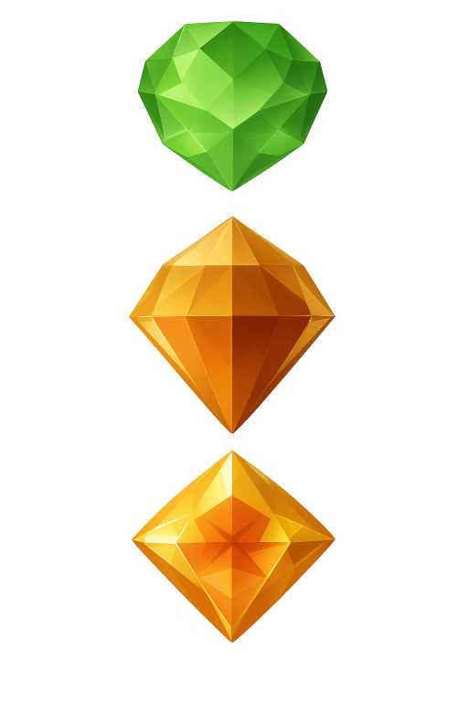 The Gem Symbols represent wealth, rarity, and the excitement of discovery. Each color — green, amber, and gold — carries its own energy and reward potential within the game.